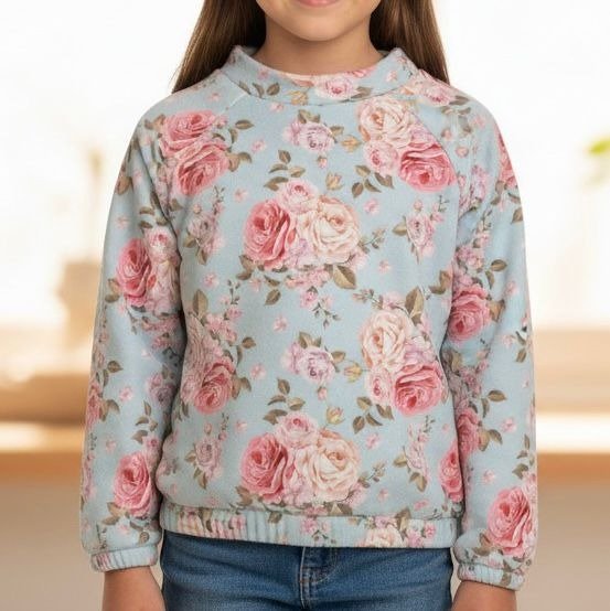BUZO PLUSH FRISADO FLORES (CELESTE)