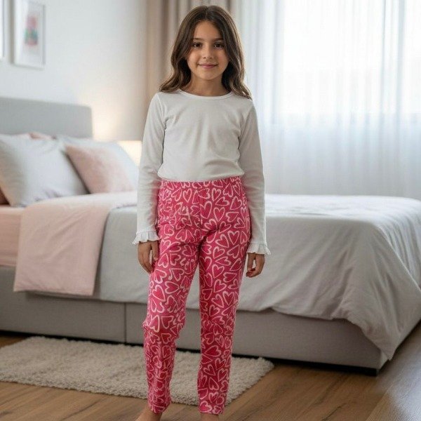 PIJAMA DE PANTALON DE PLUSH (CORAZONES)